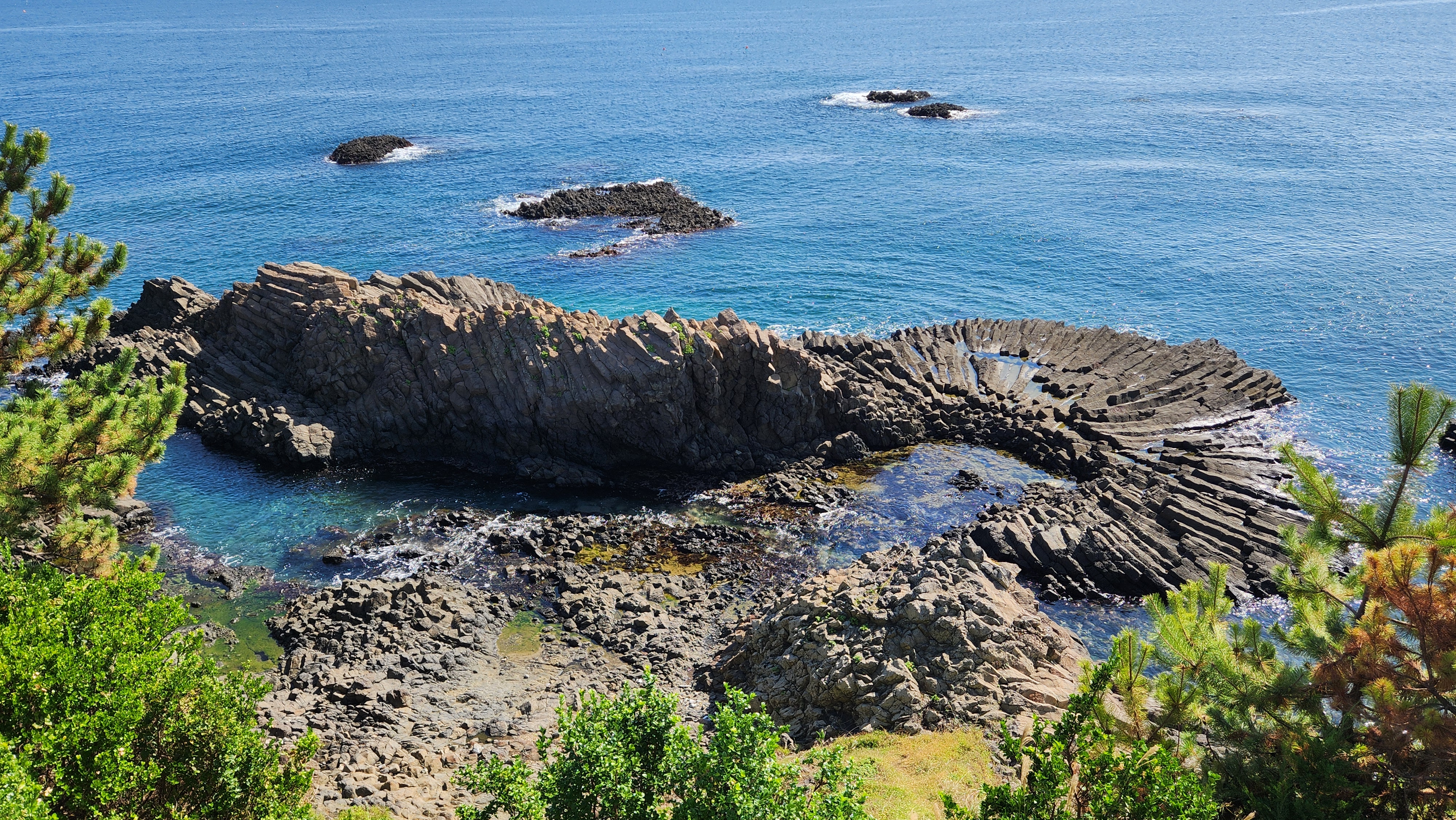 바위섬 가운데에는 인공적으로 만든 수로가 있어, 마치 네모난 연못처럼 보입니다.