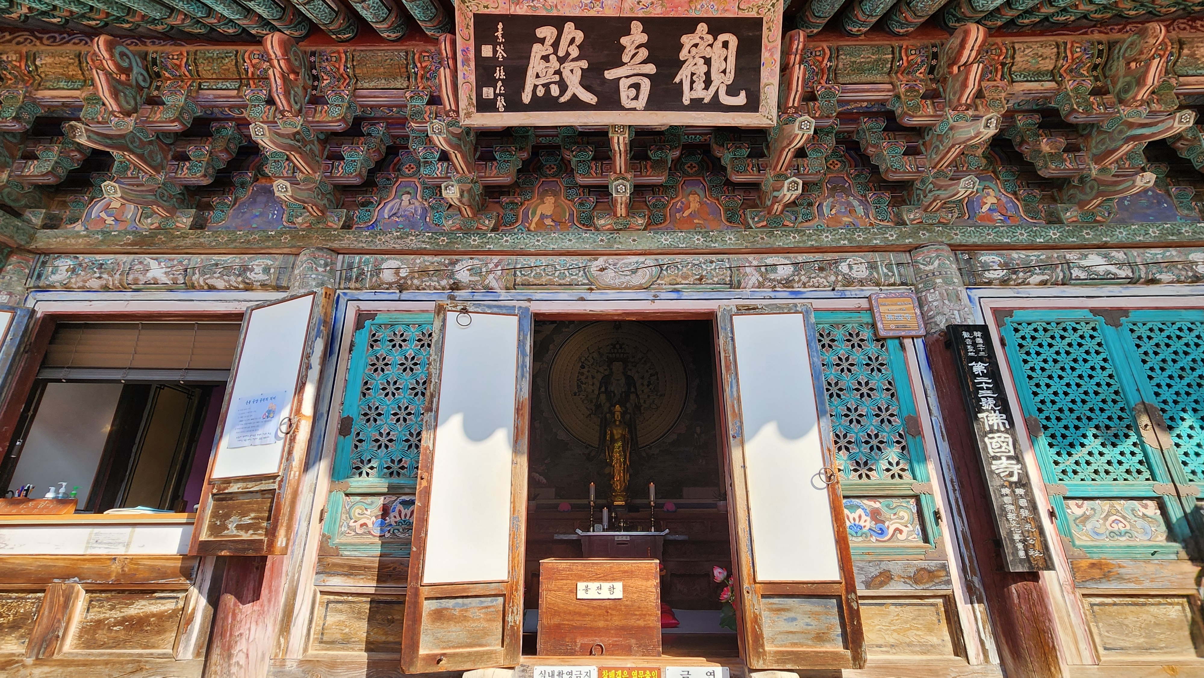 화려한 단청 아래에서 고요히 울려 퍼지는 풍경 소리는