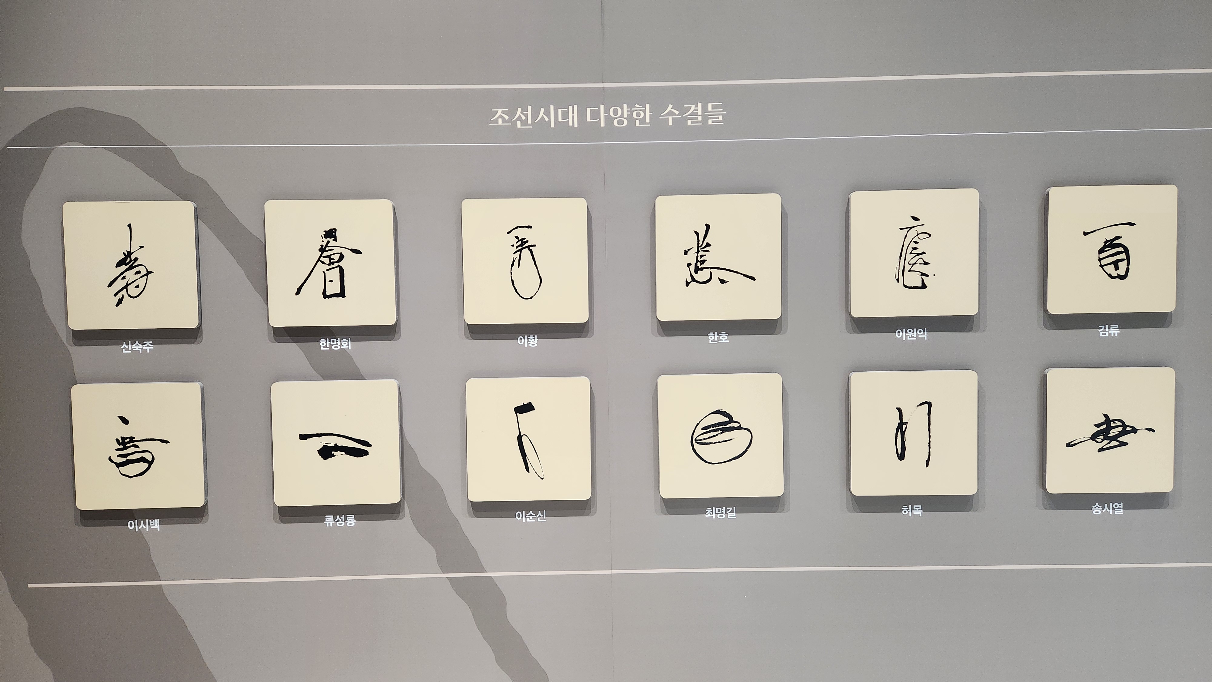 조선시대 왕들의 수결 비교표가 눈길을 끌었어요