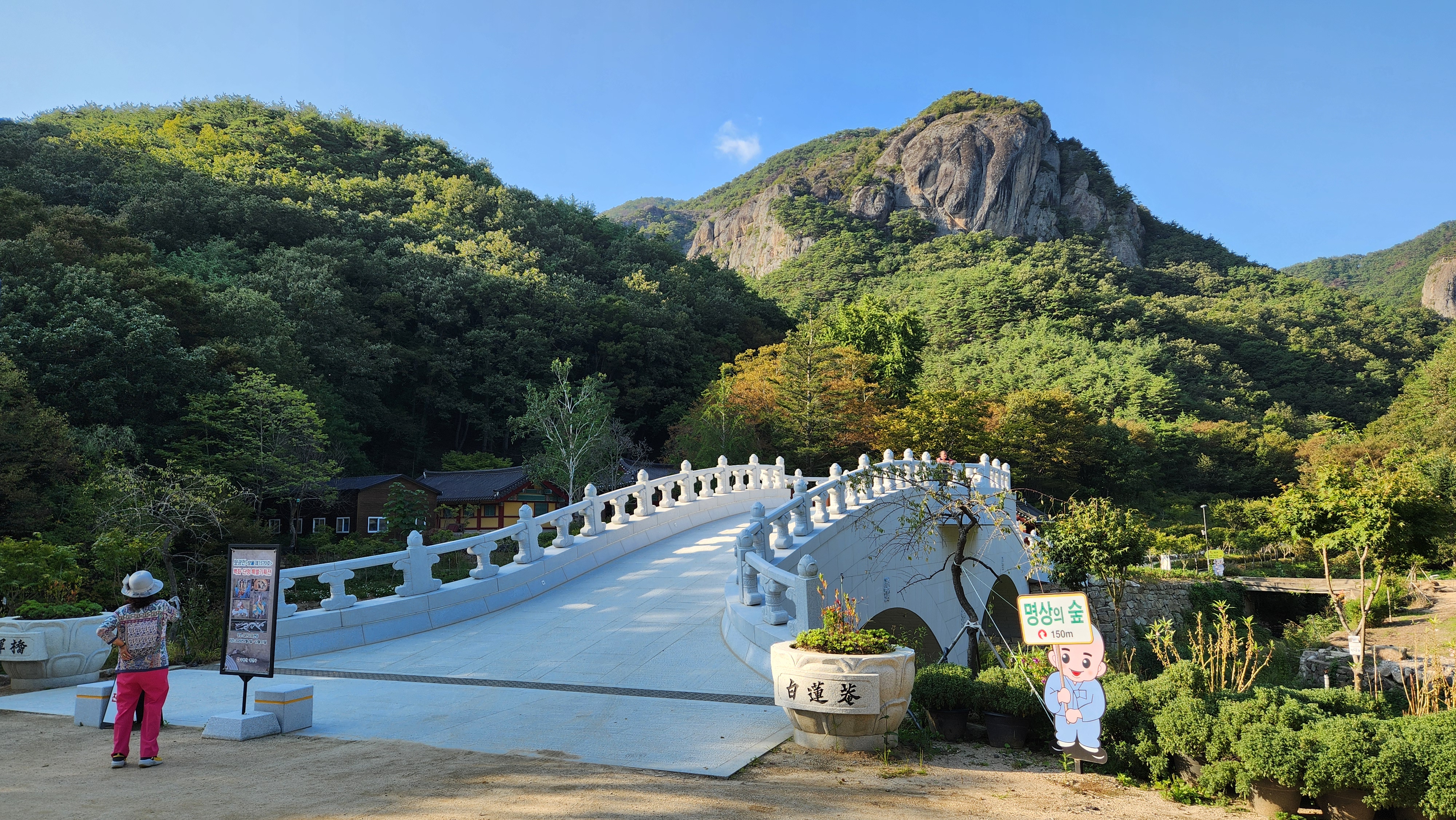 고즈넉한 사찰 건축과 뒤편의 기암이 완벽한 조화를 이루어,