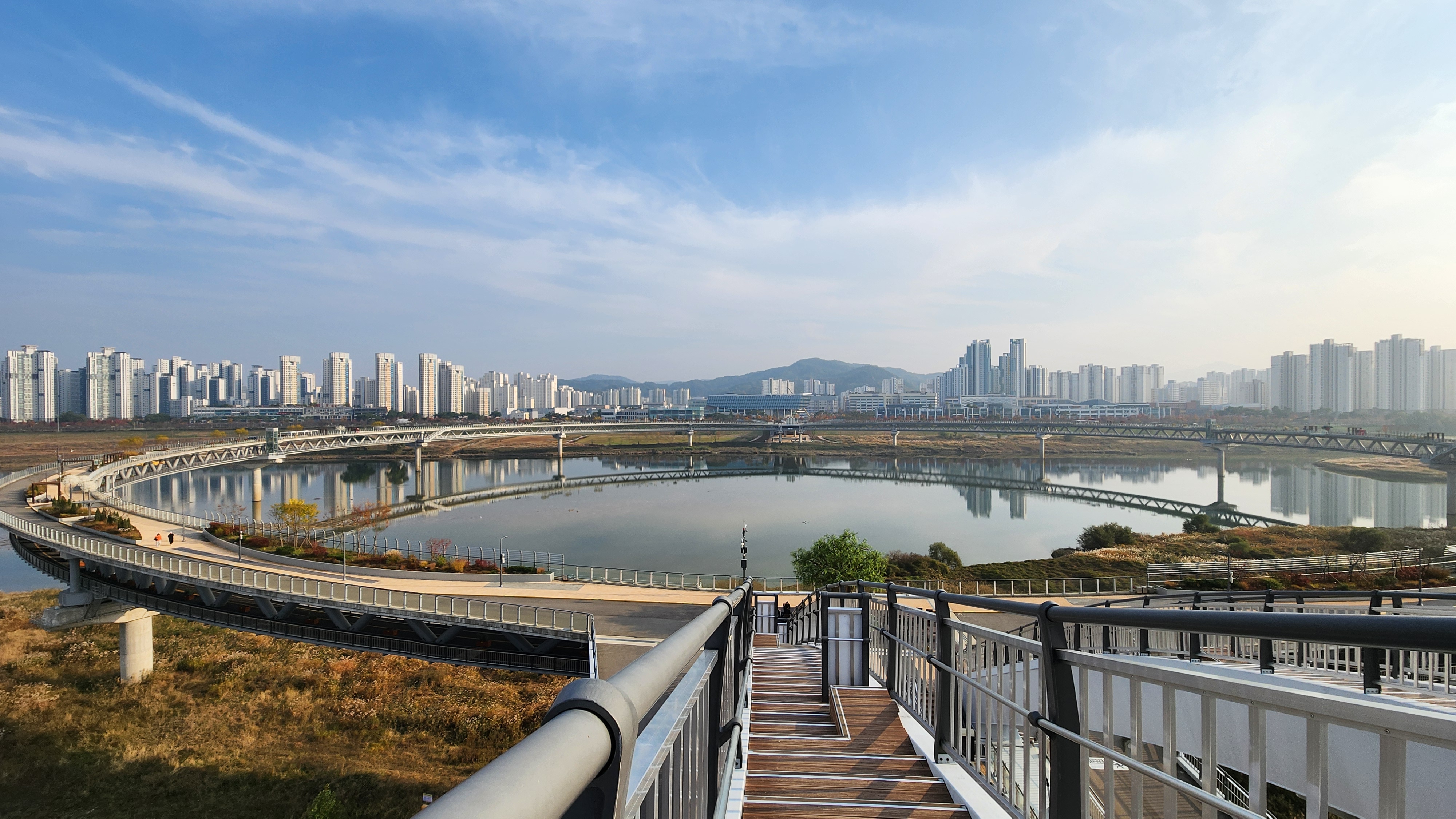 이 다리는 독특하게 원형(‘ㅇ’자 모양)으로 설계되어 있어,