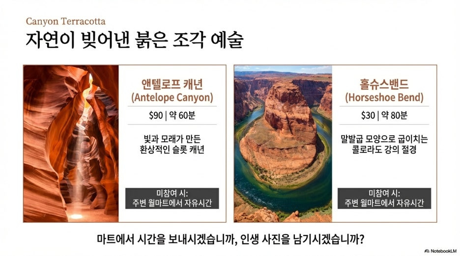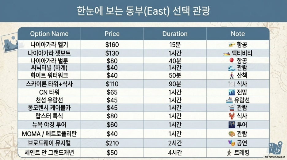 북미 지역 여행, 선택 관광 상세 알아보기